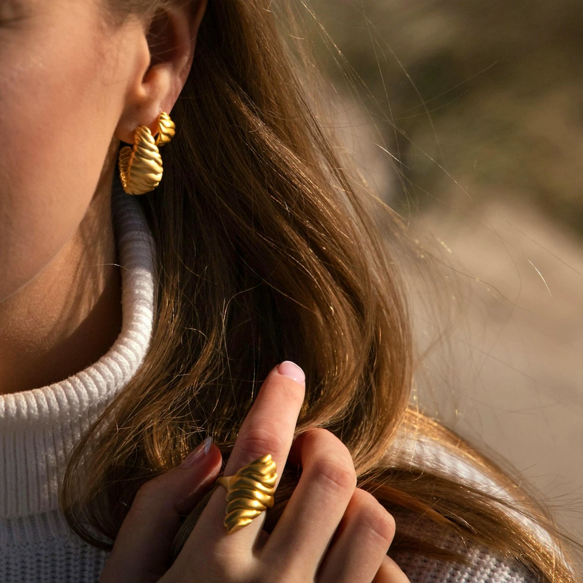 De små hoops er fine og iøjnefaldende på samme tid, og de vil uden tvivl tilføje en smule naturlig skønhed til ethvert outfit. Dunes Hoops Small er ikke kun et smykke, men et symbol på naturens evne til at skabe rolige, men alligevel dynamiske former. Øreringene emmer af en tidløs charme og kan bæres alene eller kombineres med andre smykker for et mere personligt look. Deres fine størrelse gør dem alsidige og perfekte til både hverdag og fest, hvor de vil tiltrække opmærksomhed med deres elegante design.