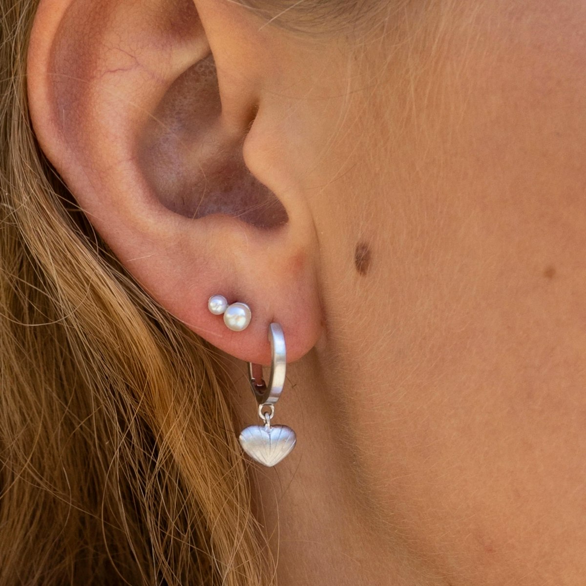 Den delikate kombination af den klassiske hoop og det charmerende hjertevedhæng gør Just Love Hoops til et alsidigt smykke, der passer til både hverdag og festlige anledninger. Vedhængets rillede struktur fanger lyset smukt, hvilket giver øreringen en diskret glans og fremhæver dens romantiske udtryk.