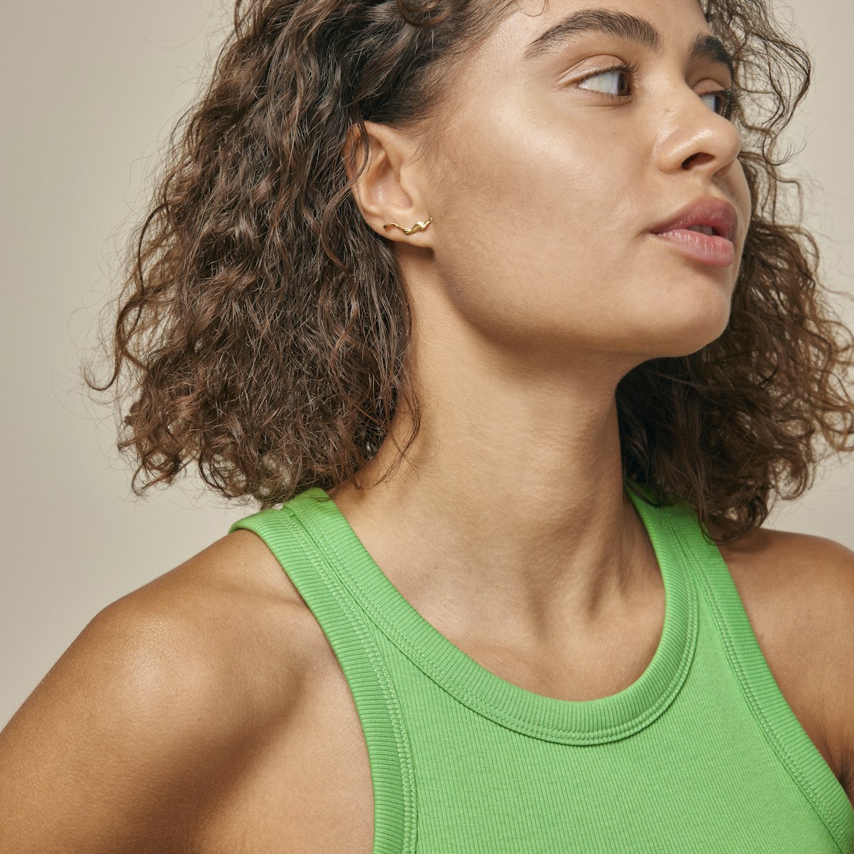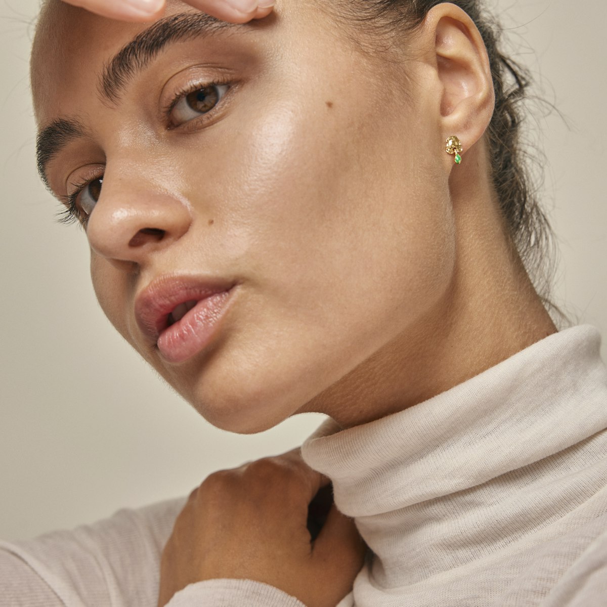 Mio studs er noget helt særligt, og nært beslægtet med Enamel Copenhagens Rio studs. De har samme raffinerede, håndlavede overflade, samt lille størrelse. På Mio studs er der tilføjet en særpræget guldskal, hvori der gemmer sig en skøn, farvet emalje, som gør den ekstra personlig, da emalje er en af Enamel Copenhagens kendetegn. Ørestikken er god at sætte i hul to eller tre, samt er nem at kombinere med stort set alle andre slags øreringe.