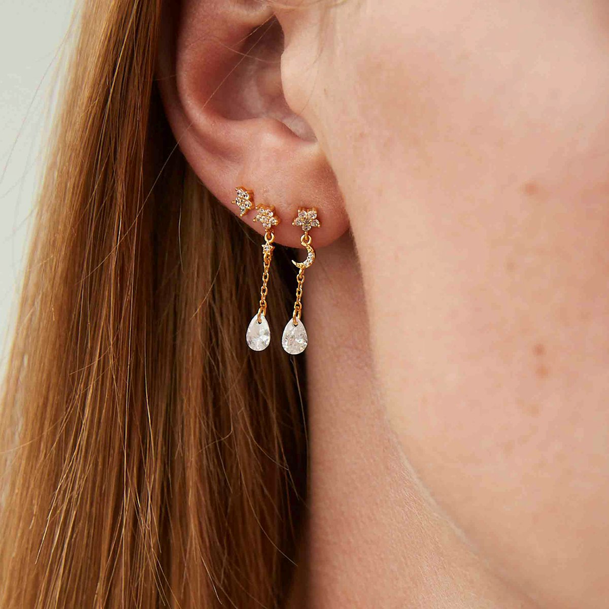 Stella serien er inspireret af de smukke danske nætter med stjerne klar himmel og en skinnende måne. 18K forgyldt sterlingsølv med 1 mikron og e-coating. Diameter: 0.4 cm.