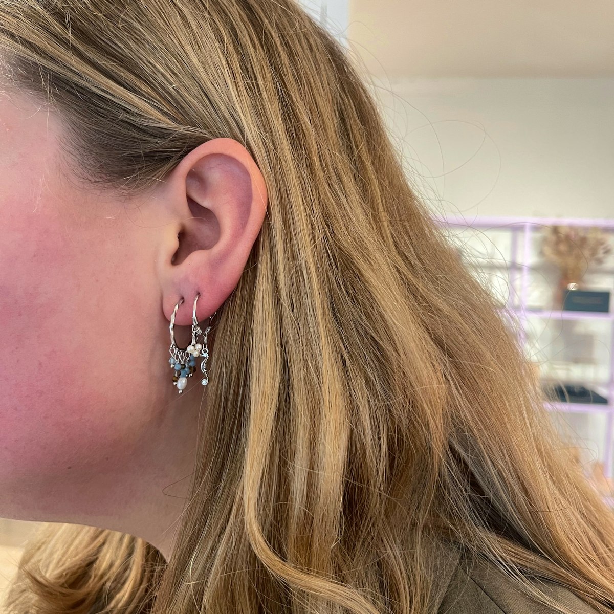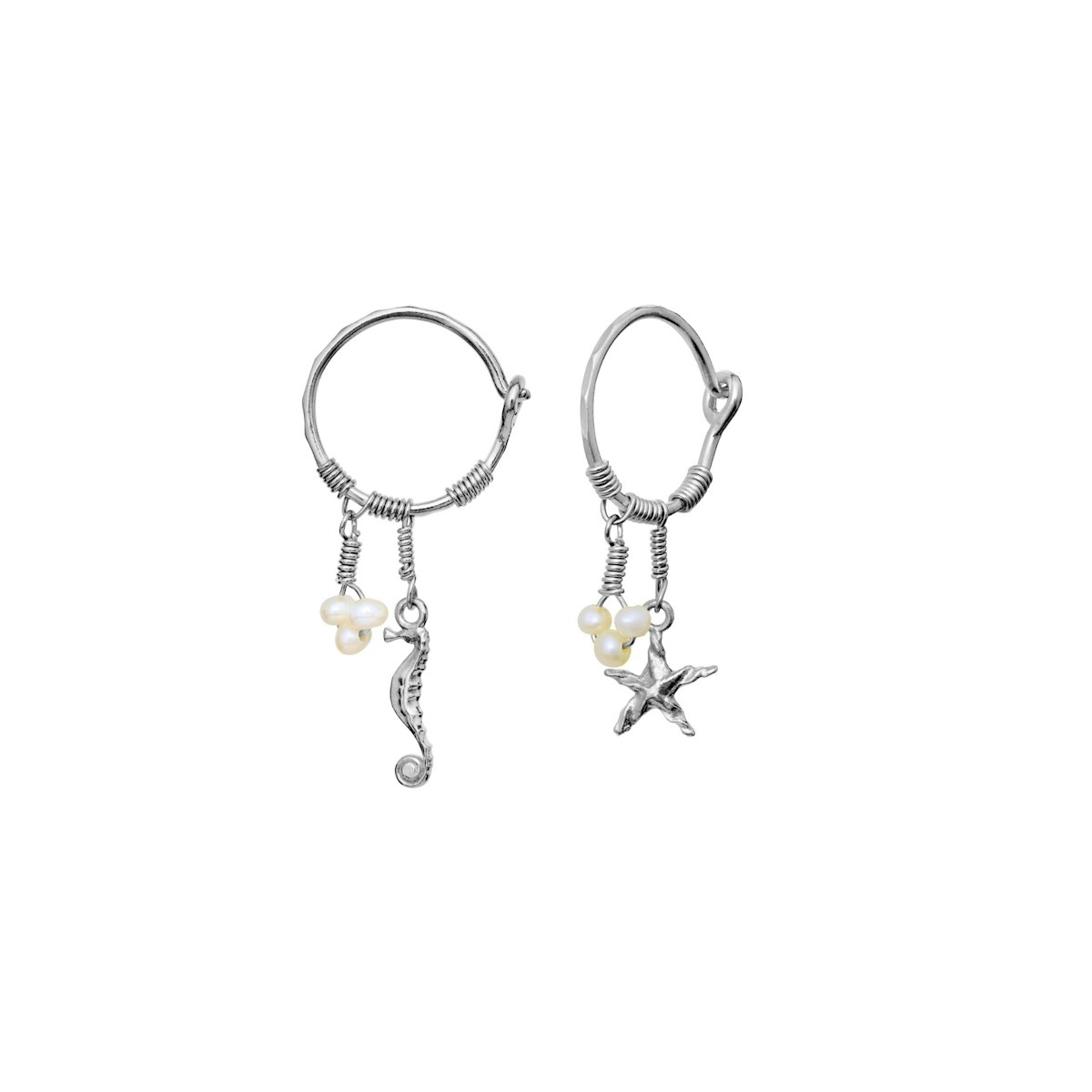 Momi tilføjer et elegant præg til den moderne havfrue med sine raffinerede trådvedhæng, dekoreret med havets mest dyrebare skatte i form af ferskvandsperler og søstjerner.