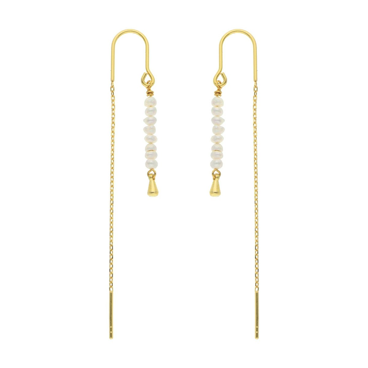 Konstrukcja jest lekka i przewiewna, a jednocześnie szczegółowa dzięki małym słodkowodnym perłom, które układają się jak sznur pereł spokoju i elegancji. W dolnej części są one wykończone małą złotą kroplą, która dodaje wagi i równowagi - zarówno wizualnie, jak i fizycznie. Wiszą miękko i poruszają się cicho, jakby tańczyły ze światłem.