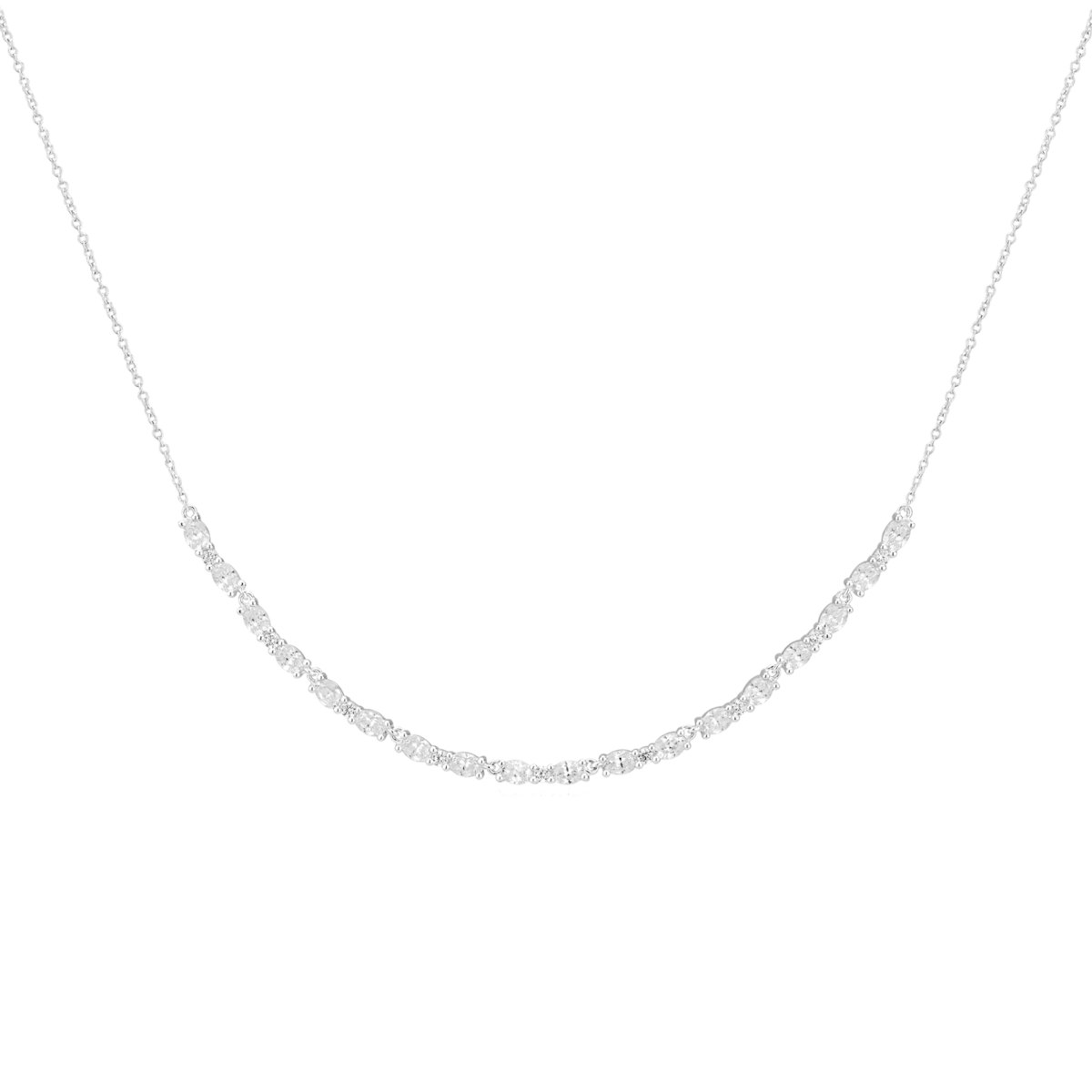 Opdag den stilfulde halskæde, der er fremstillet af 18 karat forgyldt 925 sterlingsølv med en poleret overflade og indfattet med facet-slebne hvide zirkoner. Denne halskæde er den perfekte kombination af klassisk elegance og moderne design, og den er ideel til både hverdag og fest.
