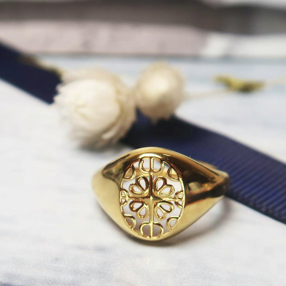Balance Ring Round er et andet bud på det fine Balance design med den smukke blomster inspireret overflade. Designet er nikkelfri og ringen kan indstilles i størrelsen.